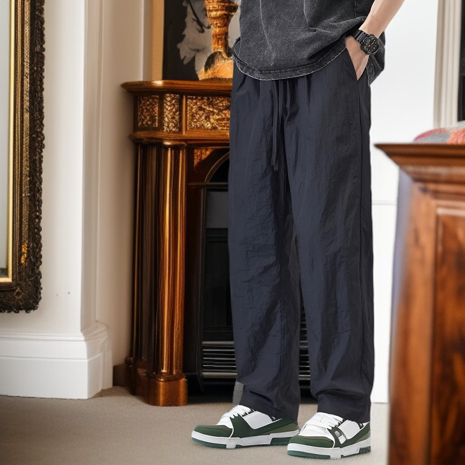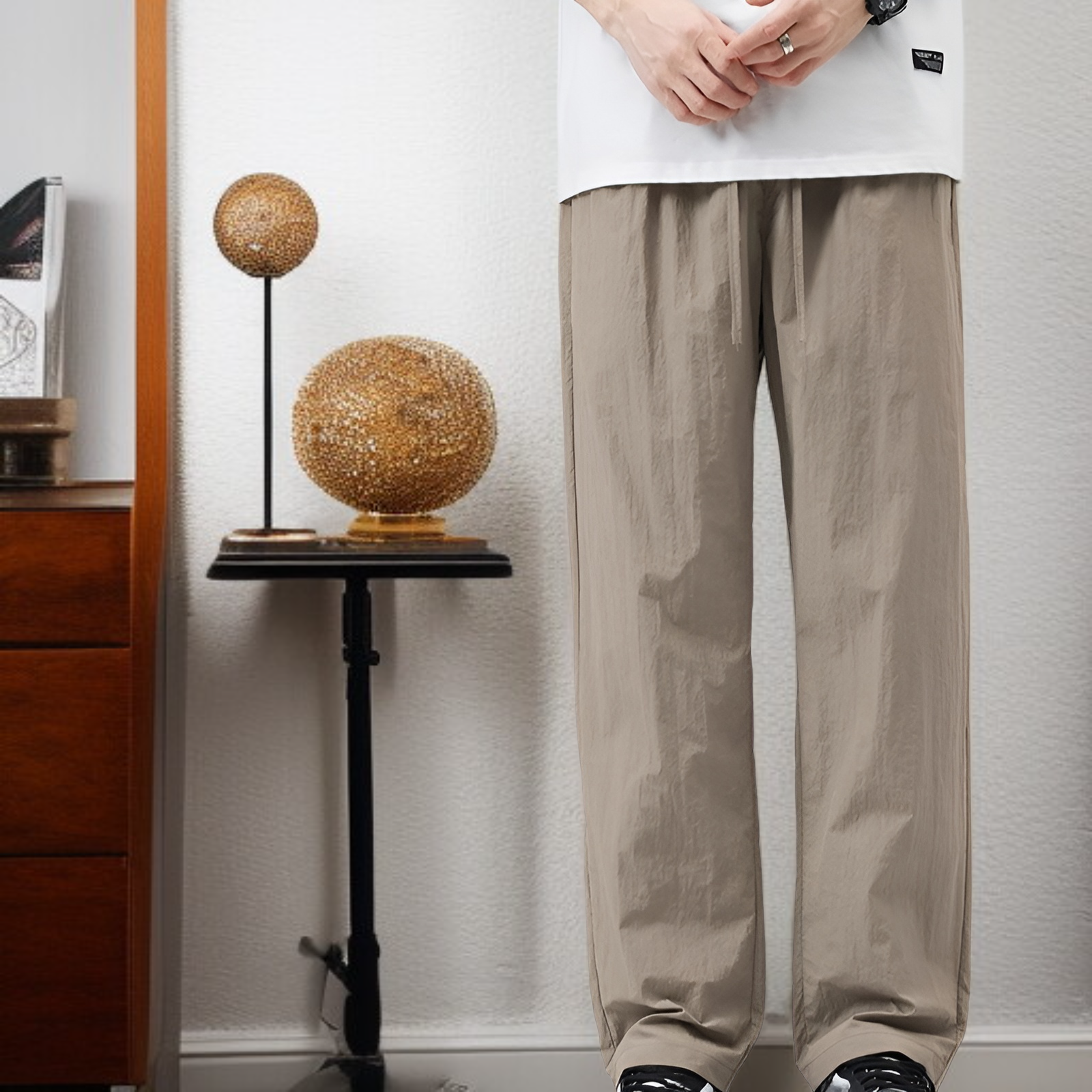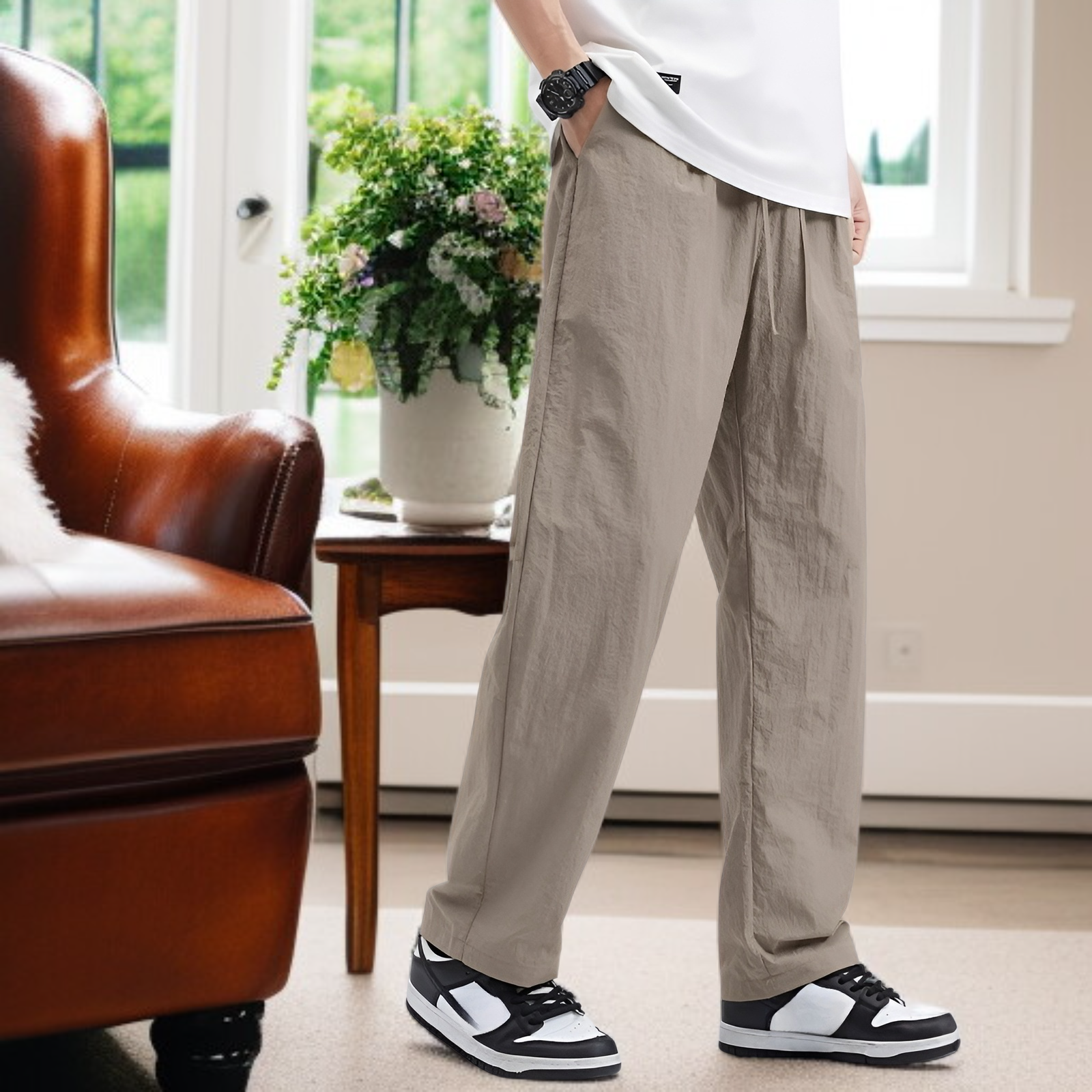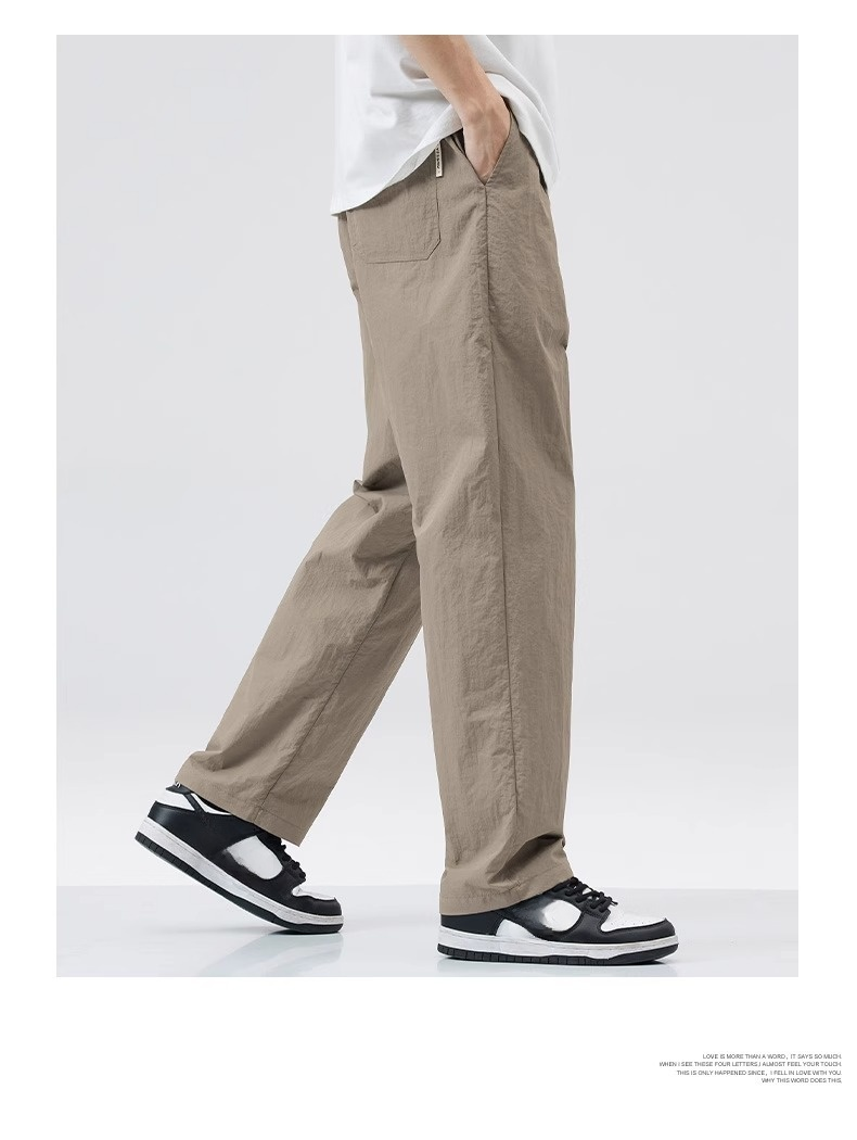 クールアイスシルクパンツメンズ夏薄手速乾ゆったりストレート作業着メンズパンツ夏スポーツカジュアルズボン