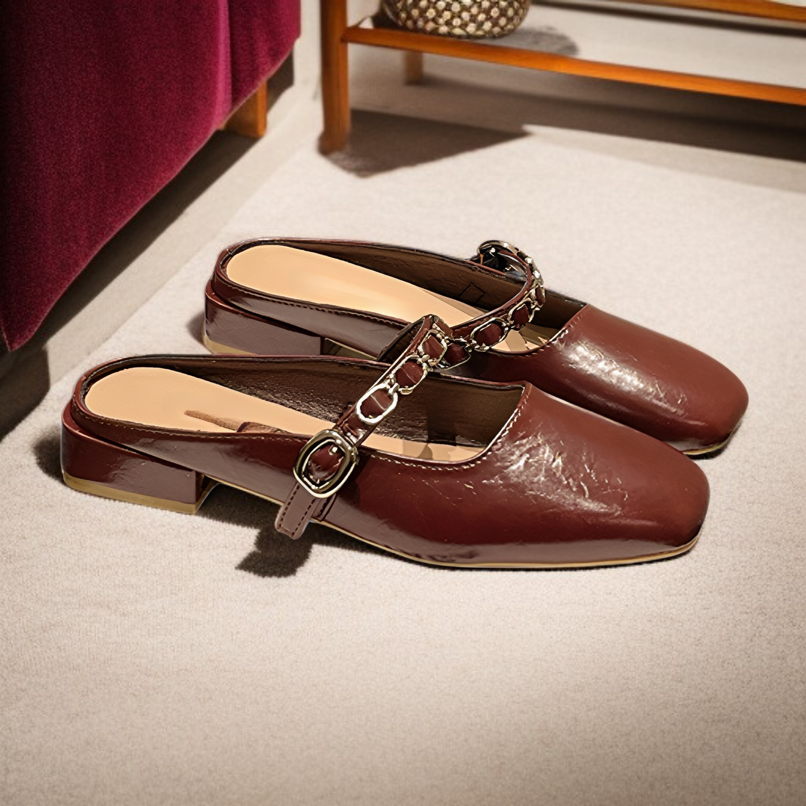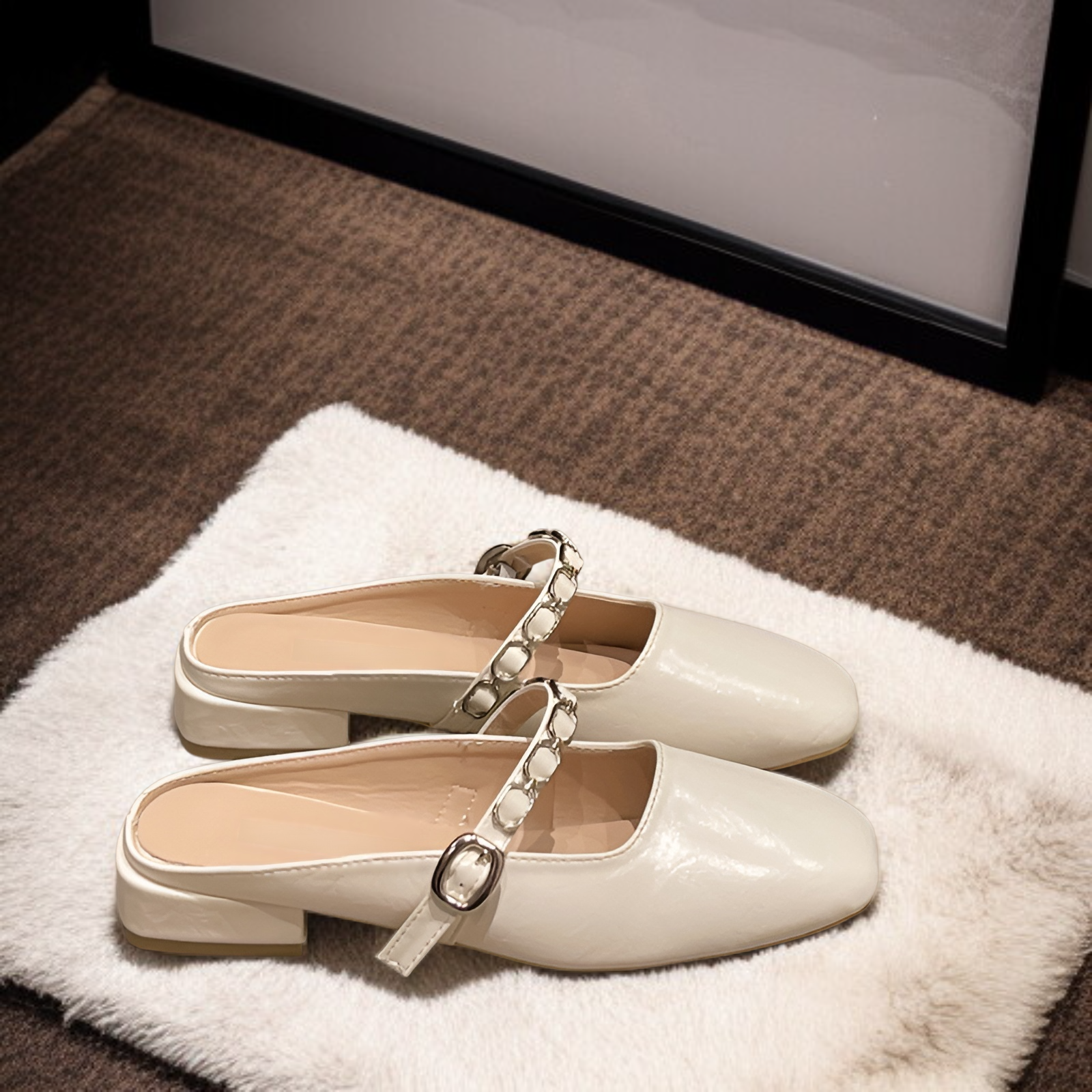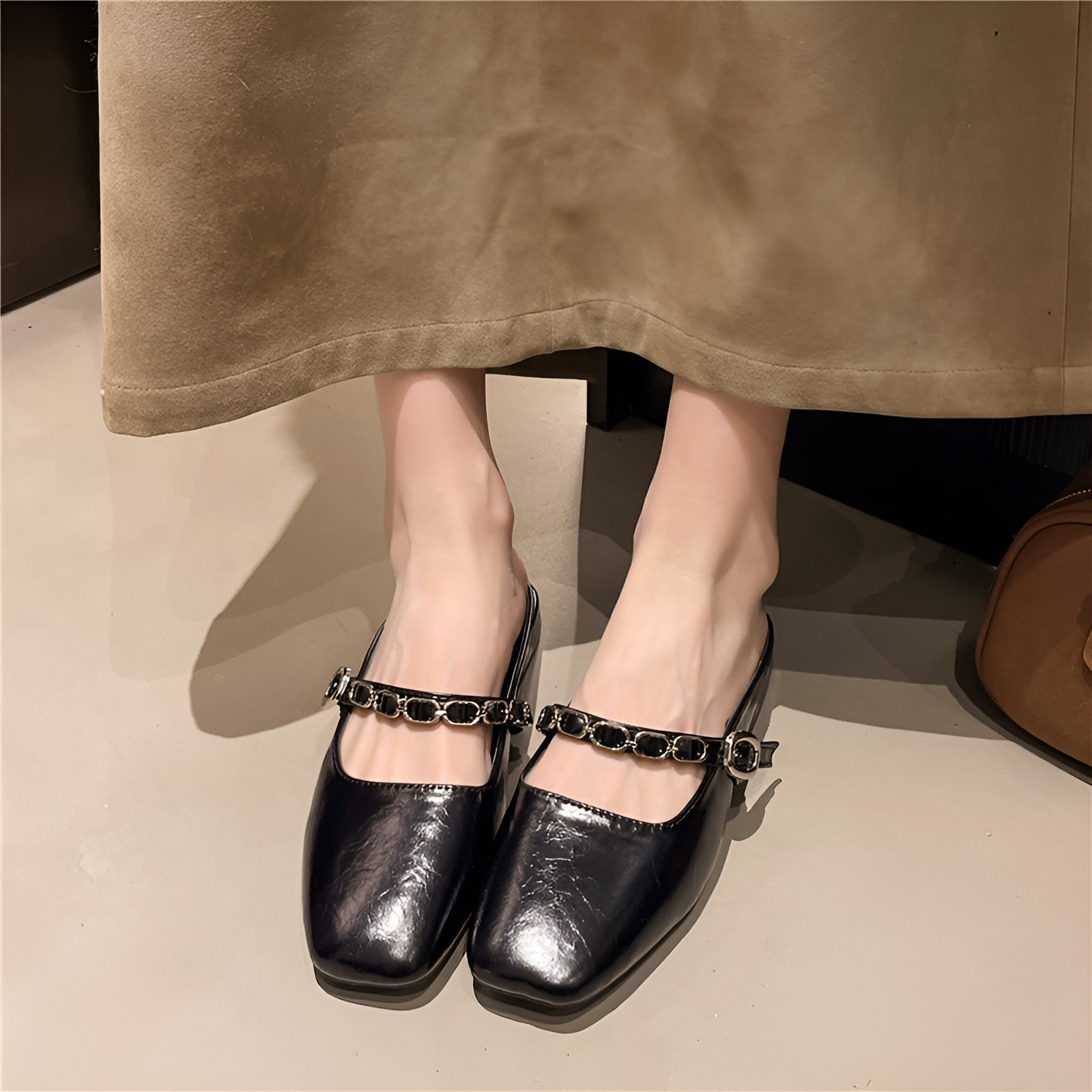 2025春夏サンダルファッションチェーンチャンキーヒールシングルシューズローヒールチェーンマッチングスカートサンダルレトロハーフスリッパレディースアウトドアサンダル